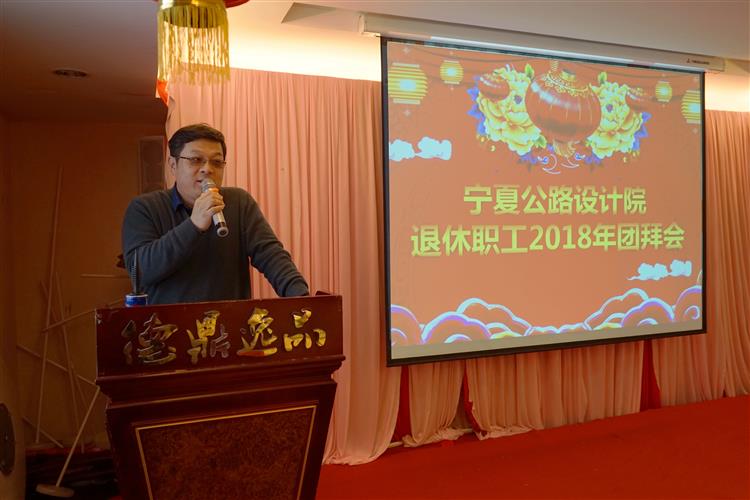林飛院長代表院領導班子致新年賀詞,他指出寧夏院在2017年生產經營、質量管控、綜合管理、人才建設和企業文化等方面都取得了很好的成績。而老同志們為寧夏院辛勤工作了幾十年,艱苦奮斗了幾十年,寧夏院今天的發展離不開他們的無私奉獻、關心與支持。