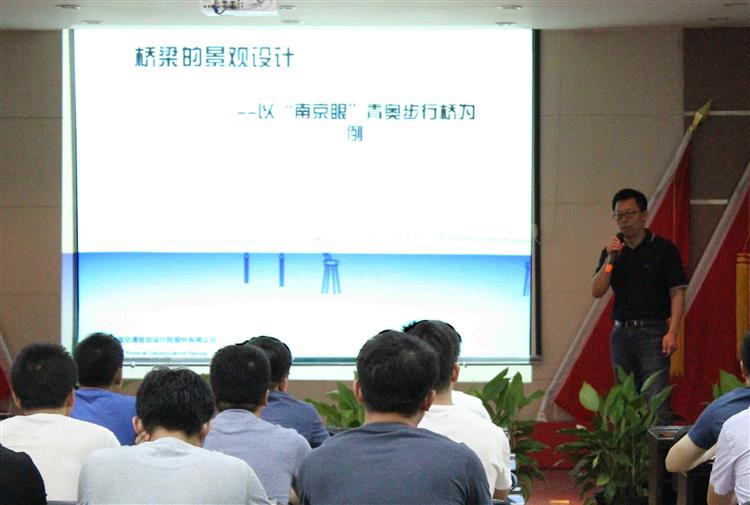 韓大章總工程師以“南京眼”青奧步行橋為例,介紹了該項目的特點、構思、創意以及關鍵性技術研究。闡述了其對現代橋梁景觀設計的觀點,認為橋梁設計人員應該具備美學相關知識,成為有靈魂的設計師,為我院橋梁設計人員未來設計的方向給出指導性建議。