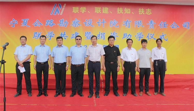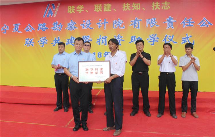 8月9日,寧夏公路勘察設計院有限責任公司聯學共建暨捐資助學儀式在大營村隆重舉行。固原市委常委、政府副市長金敬東,西吉縣委常委、吉強鎮黨委書記劉克虎,吉強鎮黨委委員、副鎮長單哈三,寧夏公路勘察設計院黨委書記、總經理林飛,寧夏院黨委委員、副總經理趙旭東,寧夏院黨委委員、管理第一黨支部書記張來虎,固原市西吉縣吉強鎮大營村第一書記、縣法院黨總支書記馬承賢,大營村黨支部書記王海忠,以及大營村全體黨員、數百位群眾和小學學生代表參加本次儀式。