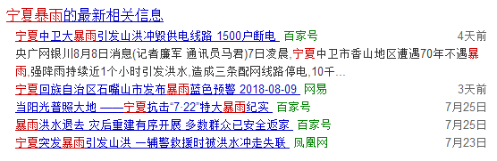 7月1日,寧夏發布暴雨預警從橙色升級為紅色,最大降雨量出現在石空渠口,雨量達到127.5毫米,暴雨造成109國道青銅峽市廣武路段局部路面被山洪沖斷;7月23日寧夏回族自治區氣象局啟動重大氣象災害(暴雨)二級應急響應。賀蘭山銀川至石嘴山段出現大暴雨,局地特大暴雨,雨量達297.4毫米,洪水頻率超200年一遇,刷新當地有氣象觀測記錄以來的日降水量極值,此次暴雨持續時間長、范圍廣、量級大,致使賀蘭山多條山洪溝暴發洪水,造成多處道路交通中斷;8月7日凌晨,寧夏中衛市香山地區遭遇70年不遇暴雨,定武高速局部受損。