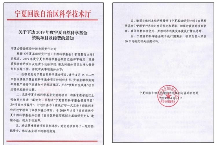 近日,根據寧夏自然科學基金管理辦公室2019年度申請基金項目的評審結果,以我院為項目依托單位,以生產技術處張繼周博士為項目負責人,申報的“六盤山陰濕地區(qū)黃土-泥巖邊坡坡體水運移機理和疏排措施研究”(項目編號:2019AAC03261)獲得寧夏自然科學基金資助項目立項,實現了我院寧夏自然科學基金項目“零突破”,填補了我院此級別項目的立項空白,這也標志著我院縱向科研項目的開展實施迎來新的重要發(fā)展契機。