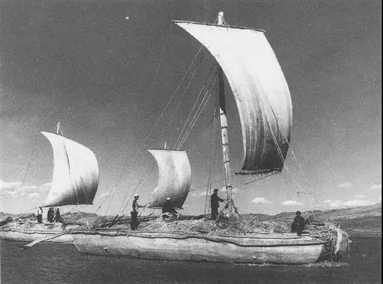 20世紀(jì)50年代行駛在黃河上的木帆船。