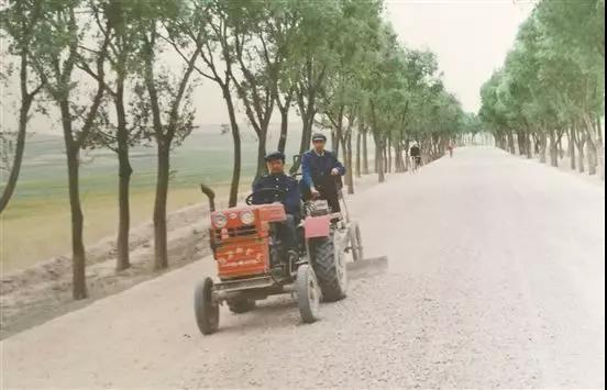 20世紀(jì)80年代,養(yǎng)護(hù)工人在309國(guó)道上用拖拉機(jī)養(yǎng)護(hù)公路。