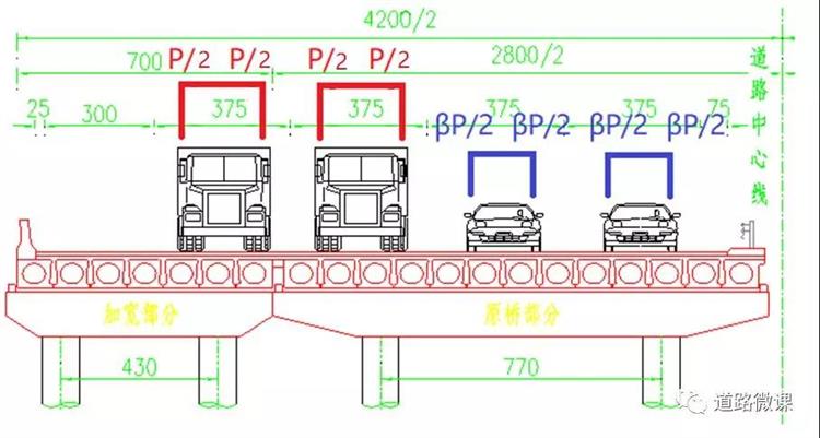 在計算某梁橫向分配系數時,不再考慮橫向位置的車輛最不利布置,而是按分車道交通組織管理的車輛固定位置作為橫向分布計算荷載位置。