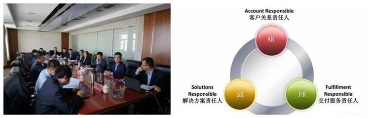 此次營銷活動充分體現了“鐵三角”協同作戰理念,在獲取線索后第一時間成立“鐵三角”營銷小組,制定明確的戰略目標、部署詳細的戰術打法、謀劃可能的戰役攻堅方案。統籌協調寧夏院綜合規劃分院和市場管理處,打破部門壁壘,形成專業分工明確、職責清晰的“鐵三角”作戰團隊。由市場管理處作為AR(客戶經理)制定客戶拜訪路徑并主導營銷談判,綜合規劃分院作為SR(解決方案經理)兼FR(交付經理)提供技術方案支持和交付案例展示。