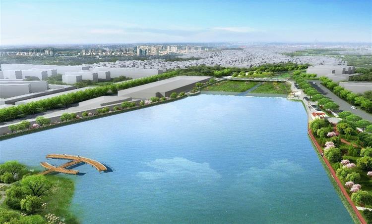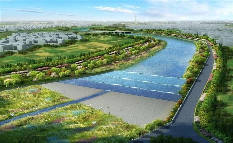 火車站橋上游基礎(chǔ)河槽及景觀綠化鳥(niǎo)瞰效果圖