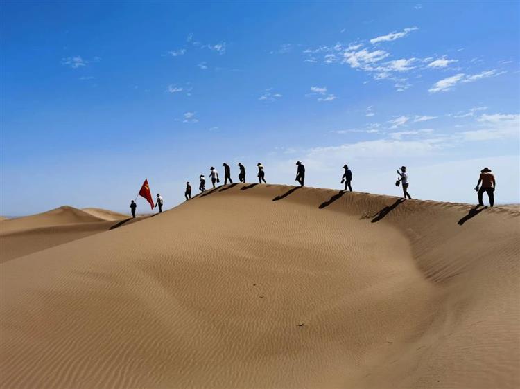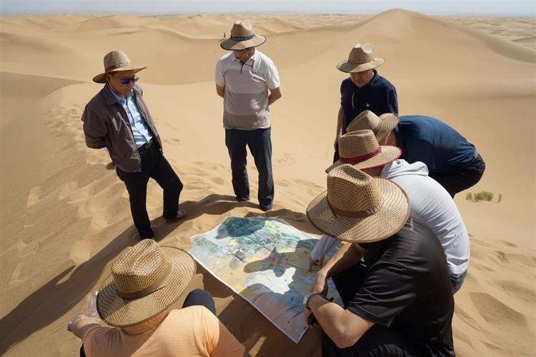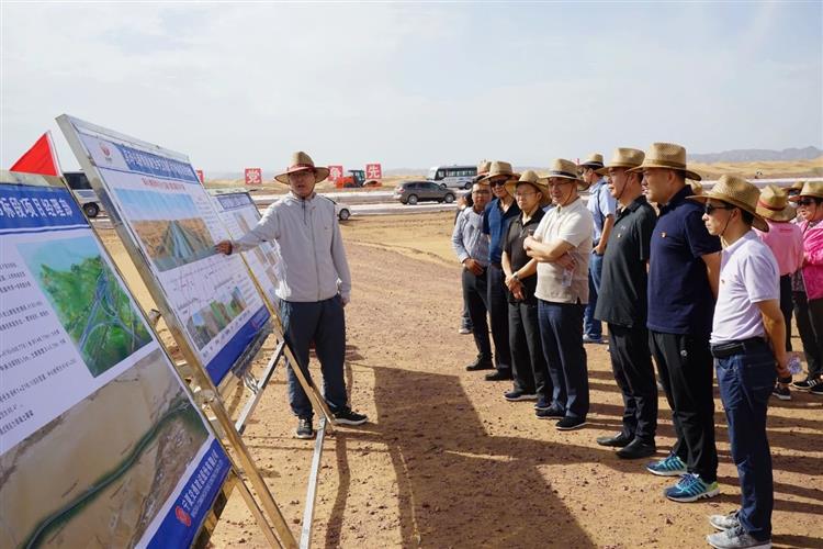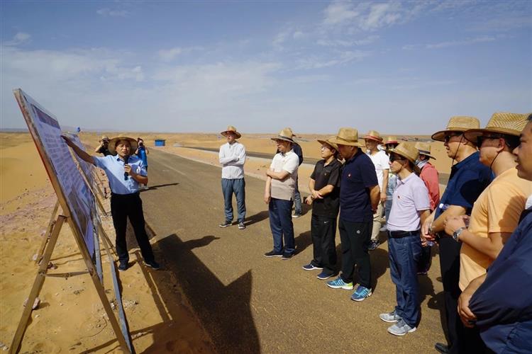 8月8日上午,一行人來到烏瑪項目A10標段參觀學習,詳細了解了烏瑪高速穿越沙漠腹地的“防沙治沙六帶一體”設計理念、施工現場及沙漠科研項目。