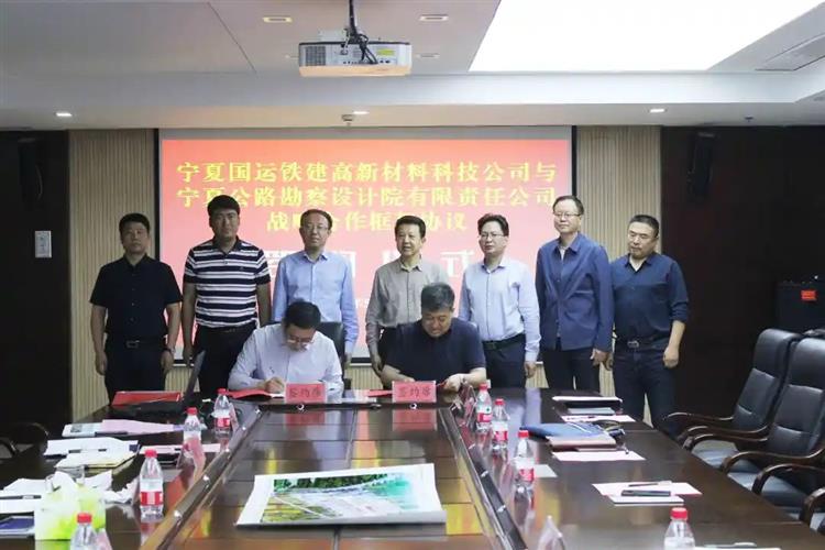 會議最后,寧夏國運鐵建高新材料科技公司董事長李志軍、寧夏公路勘察設計院總經理趙旭東代表雙方簽訂深度戰略合作框架協議。此次簽約,標志著雙方在基礎設施建設領域新材料、新技術、新工藝的研發、生產、銷售中全面展開戰略合作。