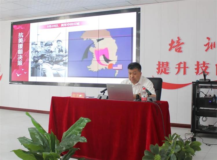 下午,全體黨員在寧夏國運鐵建高新材料科技有限公司黨支部書記秦勇的帶領下,舉行了莊重的儀式重溫入黨誓詞。寧夏公路勘察設計院有限責任公司黨委書記趙旭東以“抗美援朝、保家衛國”為主題進行黨史宣講,并回顧了在抗美援朝中鐵道兵及鐵三師(中鐵建大橋工程局集團企業前身)的光輝事跡。中鐵建大橋局西北公司黨委副書記、總經理赫宏偉圍繞朝鮮戰場上的鋼鐵運輸線、創鐵路史、為交通強國再立新功三個方面做了分享交流,最后,全體黨員群眾合唱歌曲《我的祖國》。