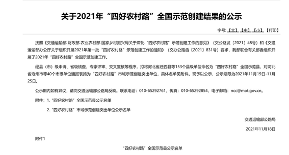 近日,交通運輸部發布《2021年“四好農村路”全國示范創建結果的公示》,由寧夏院綜合規劃分院提供技術咨詢服務的鹽池縣成功入圍“四好農村路”全國示范縣名單,也是本次公示中我區唯一獲此殊榮的縣區。