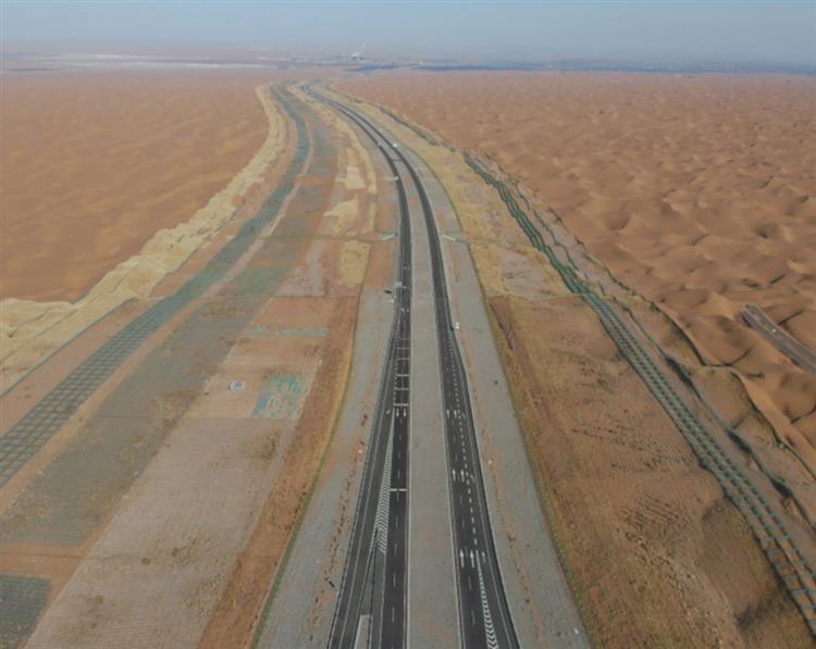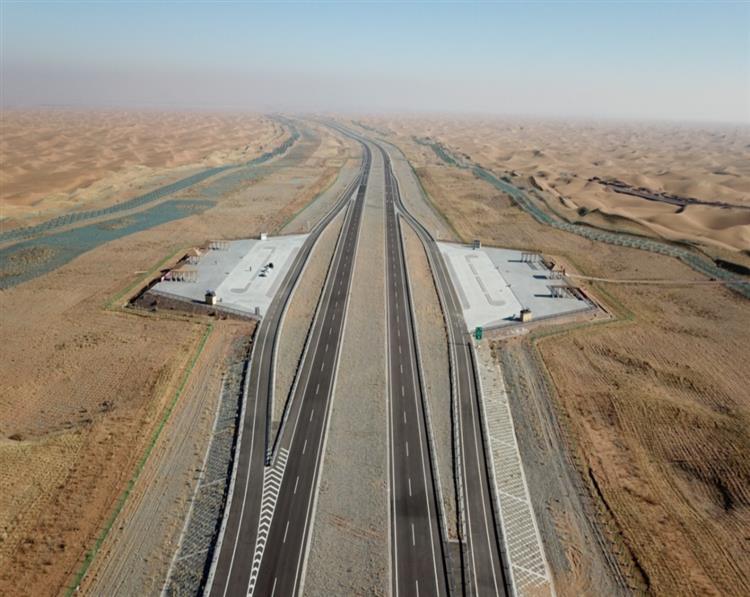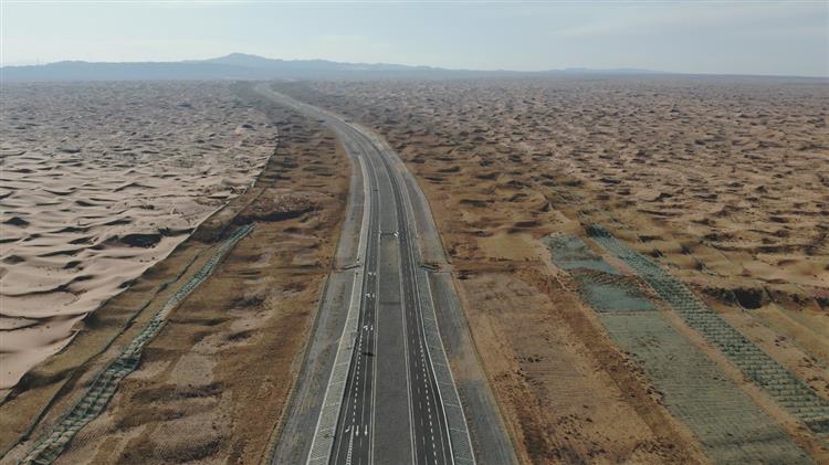 即將建成通車的烏瑪高速騰格里沙漠段