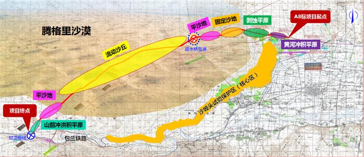 項目概況烏瑪高速公路(青銅峽至中衛段)采用雙向四車道高速公路標準建設,設計速度100公里/小時,路基寬度26.0米,經青銅峽、中衛,穿越騰格里沙漠后,在紅衛接定武高速,主線全長122.9公里,其中需穿越騰格里沙漠腹地18公里。這是國內第一條穿越四大沙漠之一騰格里沙漠腹地的高速公路,也是寧夏第一條沙漠高速公路。