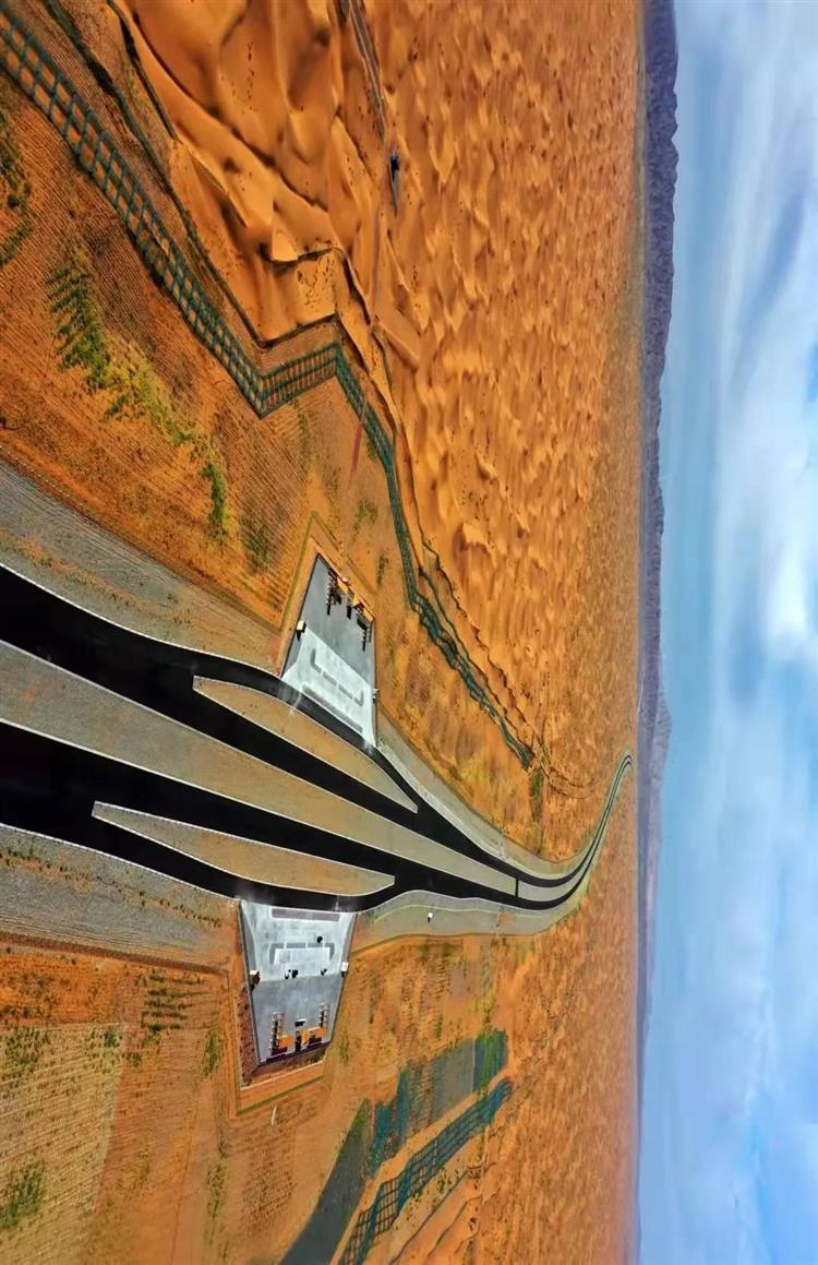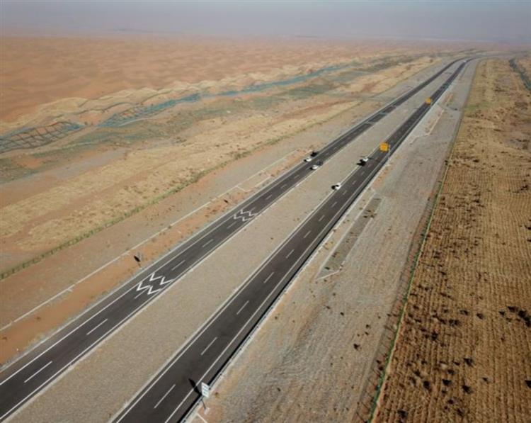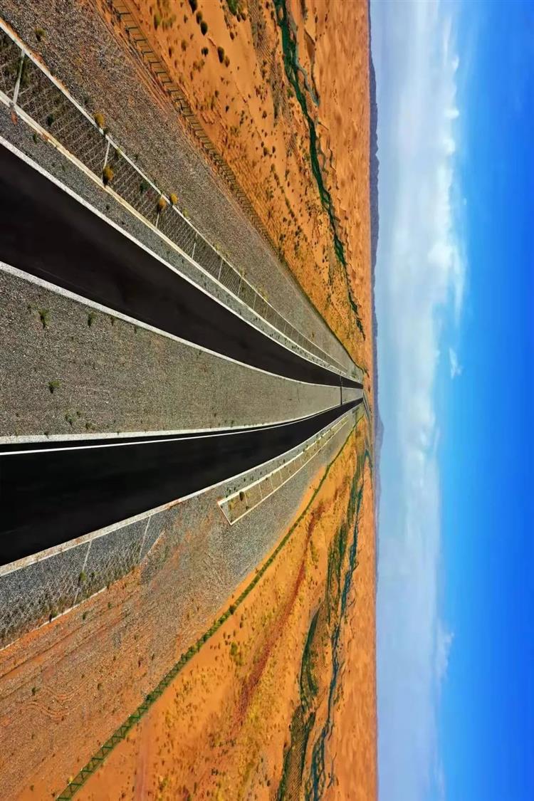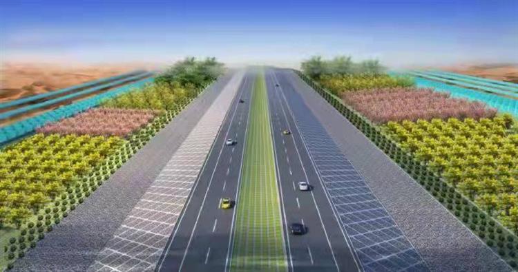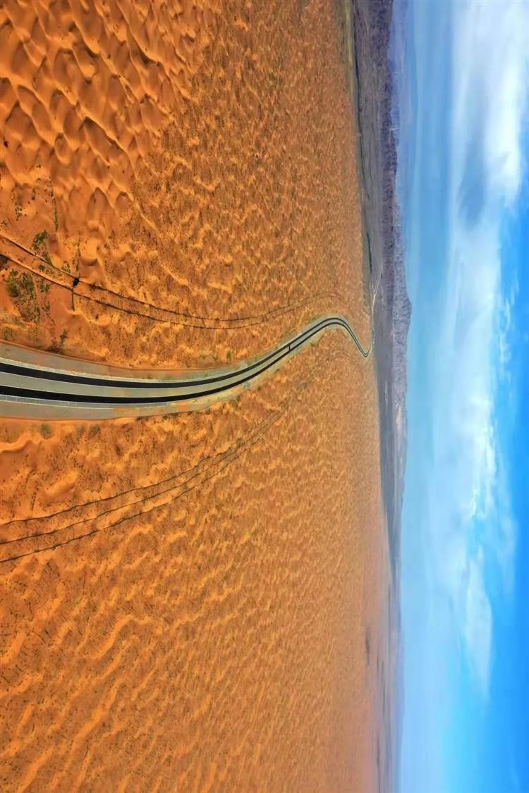 項目通車后,駕車行駛在金色的沙漠海洋中,可以觀賞“大漠孤煙直、長河落日圓”的西部印景,感受駝鈴、夕陽與月夜相伴的大漠風光,在這里蜿蜒的公路與沙漠相互融合,也是大自然的杰作與人類藝術的結合。