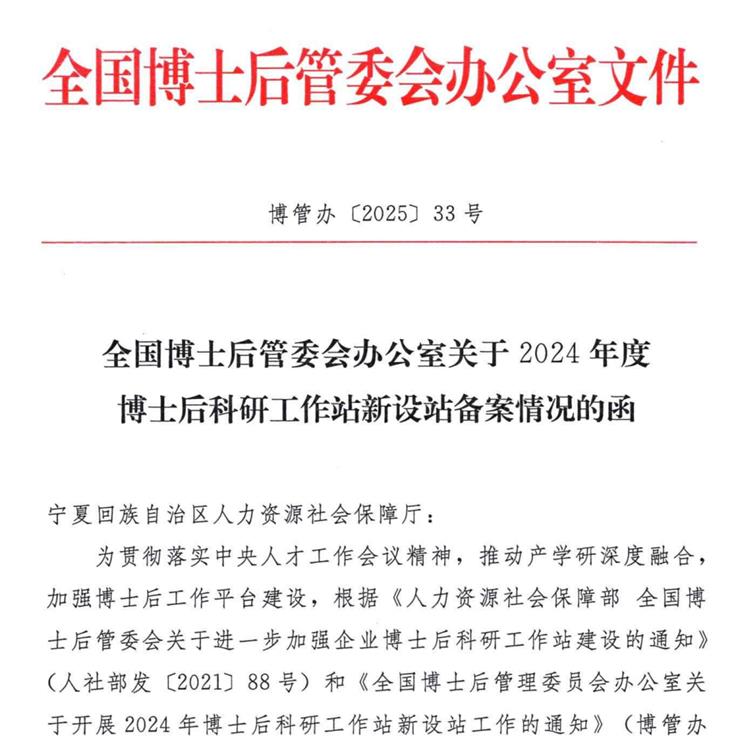 近日,經國家人力資源和社會保障部、全國博士后管理委員會審定,寧夏公路勘察設計院成功獲批設立博士后科研工作站。