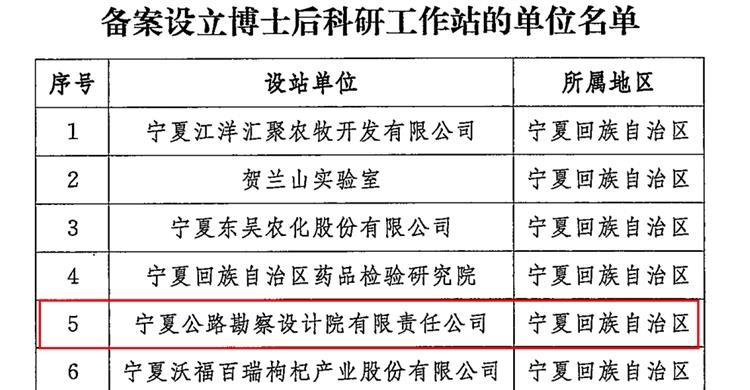 此次獲批設立博士后科研工作站,是寧夏公路勘察設計院人才強企戰略的重要舉措。
