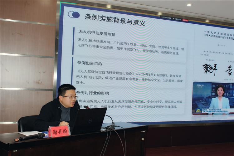 培訓會上,寧夏院副總經理、低空經濟專班負責人張雷和工程測繪信息技術中心主任謝昇翰分別作專題報告,深入解讀低空項目策劃、無人機資質運營、寧夏院無人機駕校建設(專業實景化的訓練場地、先進的模擬飛行設備、優秀的師資團隊、標準化的課程,構建"資格認證+人才輸出+場景應用"的產業生態閉環)及交通巡檢應用等議題。課程緊貼業務需求,涵蓋市場前瞻分析、培訓實操指引及跨界場景探索,為干部隊伍注入創新思維、增強實戰技能,助推企業開拓新興市場。